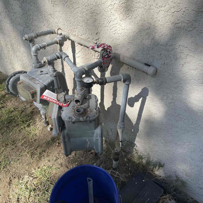 A plumber in Murrieta, California, disconnected the gas meter, pressure tested the gas line at 15 psi for 15 minutes, and found no leaks. After confirming the system was secure, the plumber reconnected the gas meter to restore safe gas service to the home.