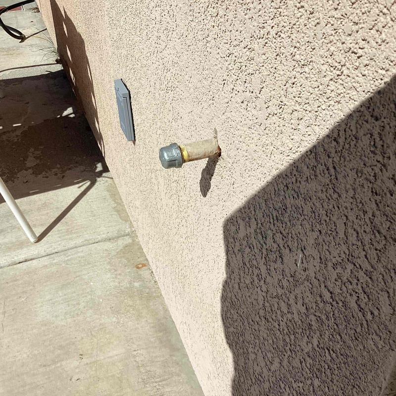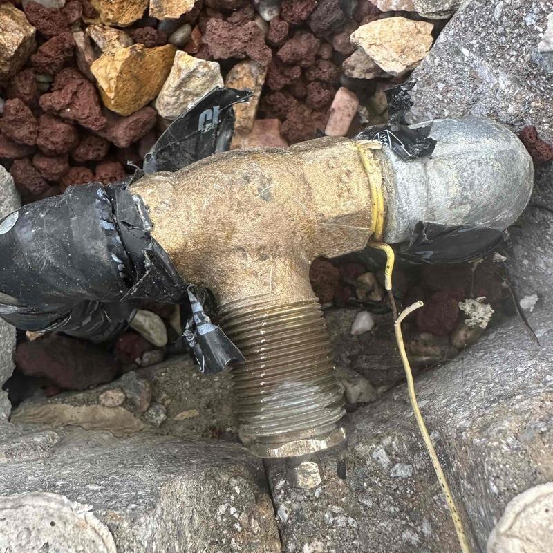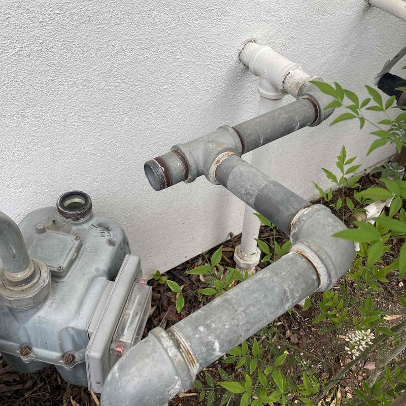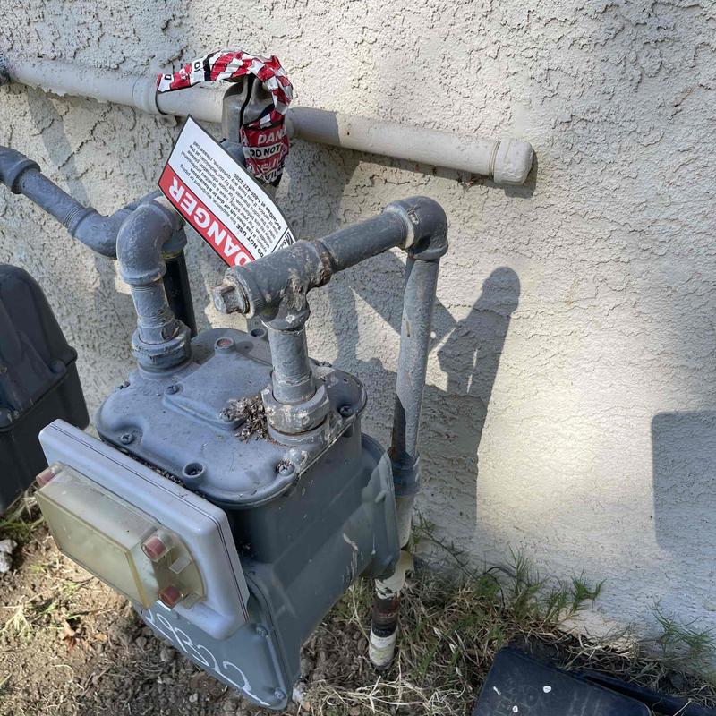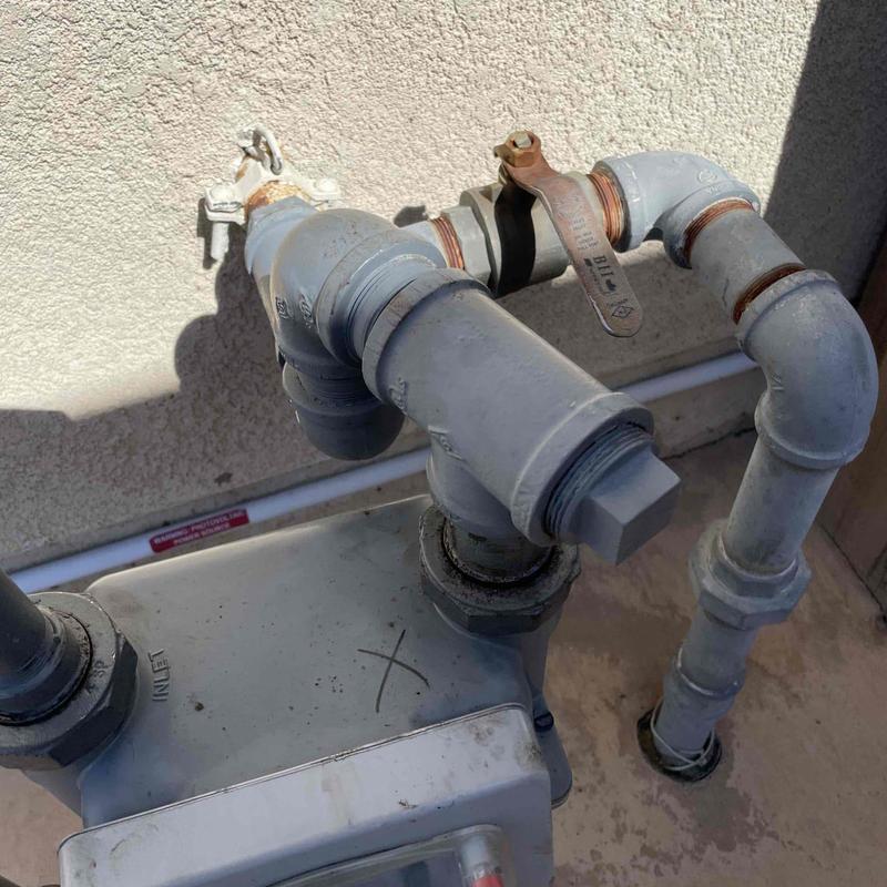 A plumber in Lake Elsinore, CA, repaired a damaged gas riser in a backyard. The team disassembled the riser, performed gas tests, and replaced a failed galvanized gas line. They rebuilt the transition with new fittings, installed a gas valve and union, and pressurized the main gas line to ensure safety before advising tenants to contact the gas company.