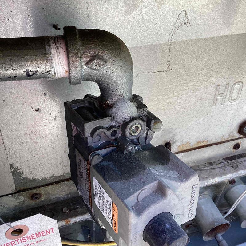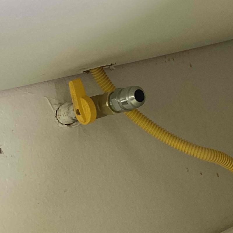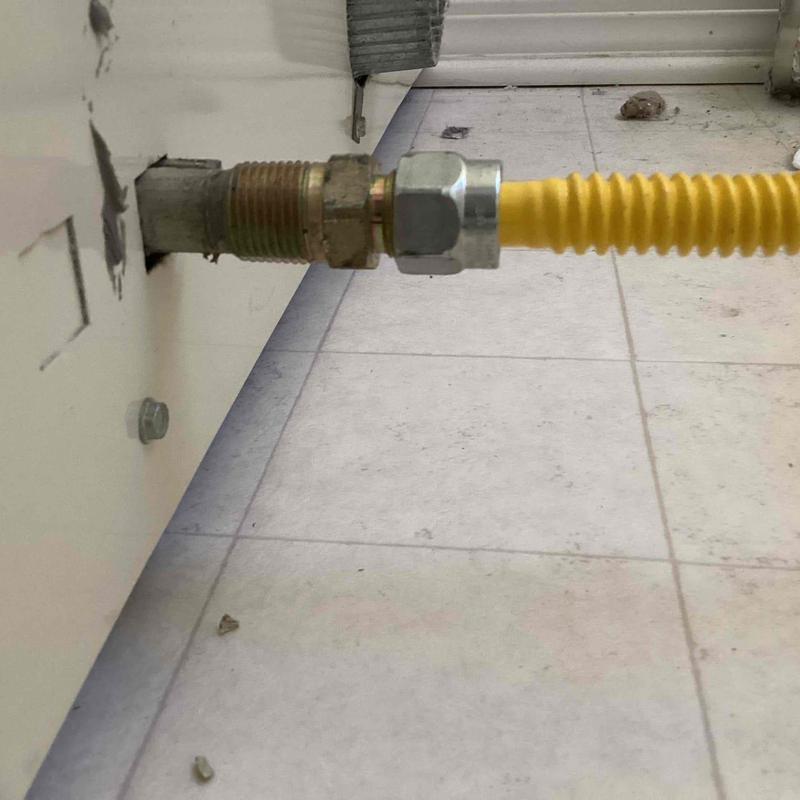A plumber in Murrieta, California inspected a gas leak in a laundry room. They replaced the faulty gas valve, gas flex line, and adapter on a dryer. The plumber tested all connections after the repair and confirmed the system was safe and leak-free. All parts and labor were included in the service.