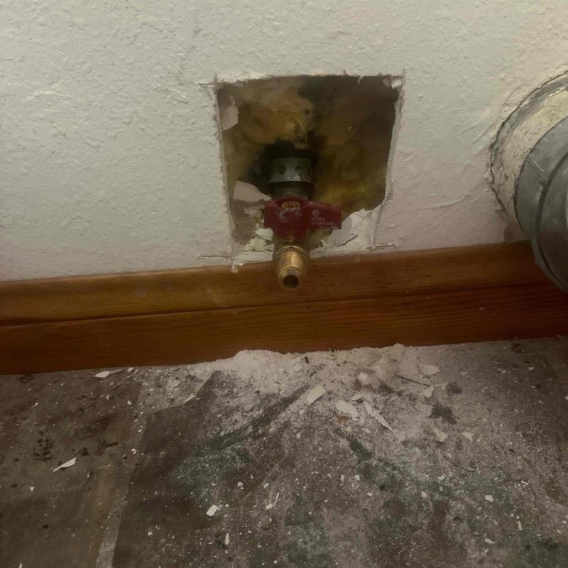 A plumber replaced a gas valve for a dryer in Murrieta, CA. The job involved cutting drywall for access, unthreading the old valve, applying thread sealant, and installing the new valve. The plumber tested for leaks to ensure proper functionality.
