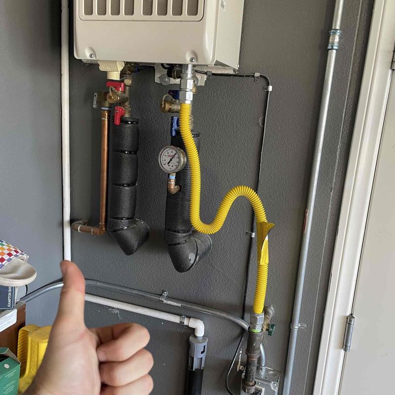A plumber in Oceanside, California replaced a full gas line from the gas meter to a tankless water heater. The job included installing galvanized pipe, track pipe, and fittings. The plumber completed pressure testing, received city inspection approval, and confirmed the system was ready for SDG&E gas service activation.