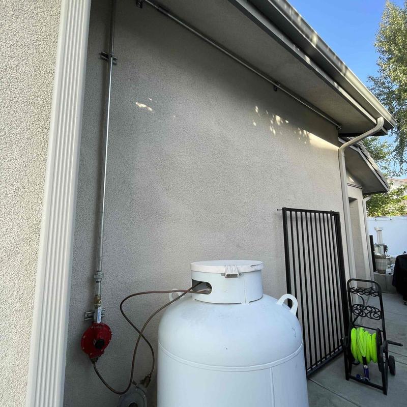 R and R Plumbing rerouted a ¾” galvanized steel gas line from a tank to a pool heater in Murrieta, California. They used a unistrut rail mount system and mega press fittings, installed new unions and ball valves, relocated gas regulators, and tested the propane system to confirm the pool heater functioned correctly.
