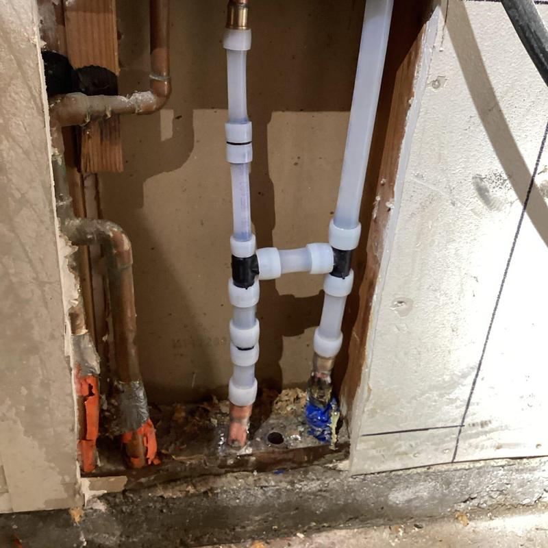 A plumber in Corona, CA, removed an old gas pipe, drilled holes through framing, and installed a new gas line inside the walls for a garage renovation. The project included running 20 feet of 1 1/4-inch pipe and testing all fittings to ensure a secure connection before restoring gas service.