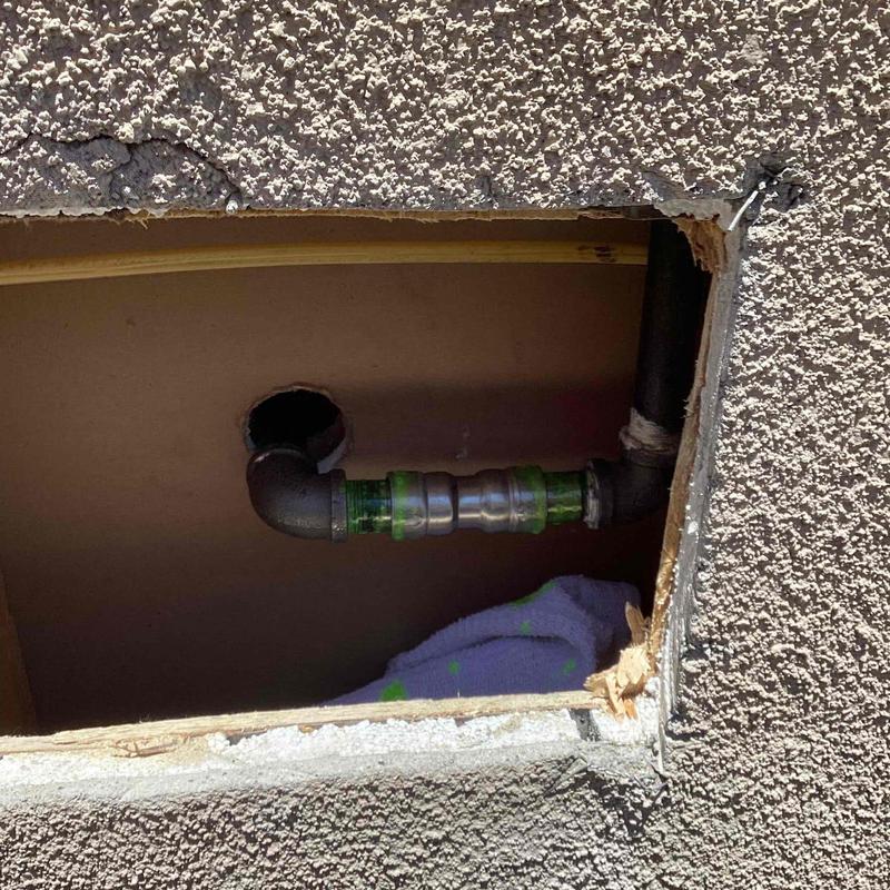 A plumber in Temecula, California removed a leaking log lighter valve and replaced it with a new unit. The job required access through stucco and drywall. The plumber reconnected black iron piping, pressure-tested the system, and sealed wall openings to prevent drafts. All connections passed inspection without leaks.
