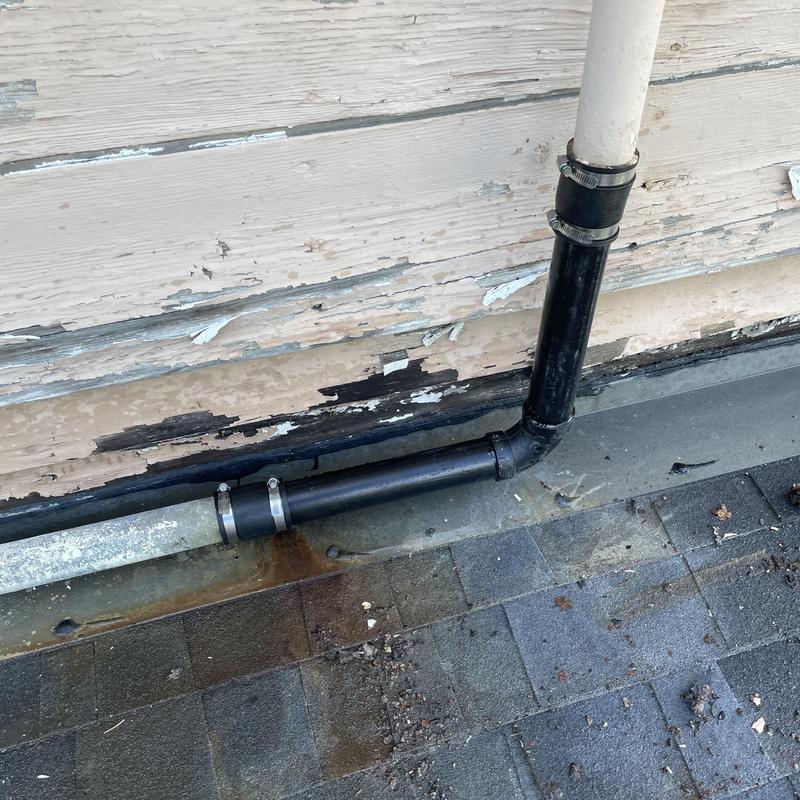 R and R Plumbing repaired a leaking rooftop drainage system in Lake Elsinore, California. The team replaced a cracked ABS drain line and failed couplings, cleared a clogged galvanized drain with a descaling machine and water pressure, and rebuilt the drainage segment using new ABS piping. The system was tested and confirmed leak-free.