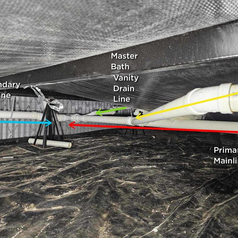 R and R Plumbing inspected a blocked sewer line in Wildomar, California. Technicians used a camera to locate a failed pipe section in the crawl space. They identified incorrect elevation and recommended removing an unnecessary sewer lateral. The team will reconfigure and repipe master bathroom sewer lines to improve drainage and connect directly to the main line.