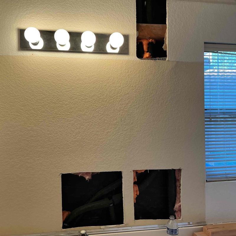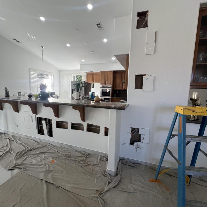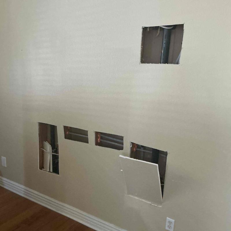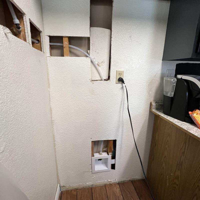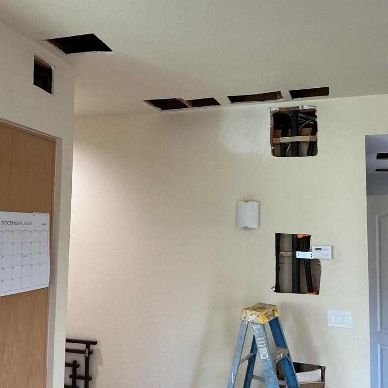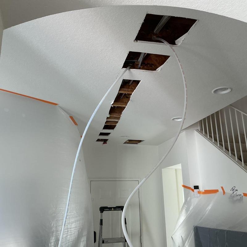 A plumber in Murrieta, California completed a full home re-pipe, replacing copper pipes under the foundation with new PEX-A lines. The project included installing shut-off valves, hose bibs, angle stops, and supply lines. After plumbing work, the team repaired and textured drywall for a clean interior finish.