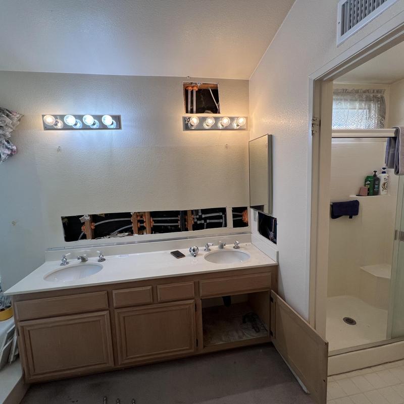 A plumber in Escondido, CA, removed an old fiberglass shower and installed a new shower base with a P-trap and drain. The team also replaced a kitchen sink, connected a double basin drain, and reinstalled the garbage disposal. All plumbing was tested to ensure proper function and no leaks.