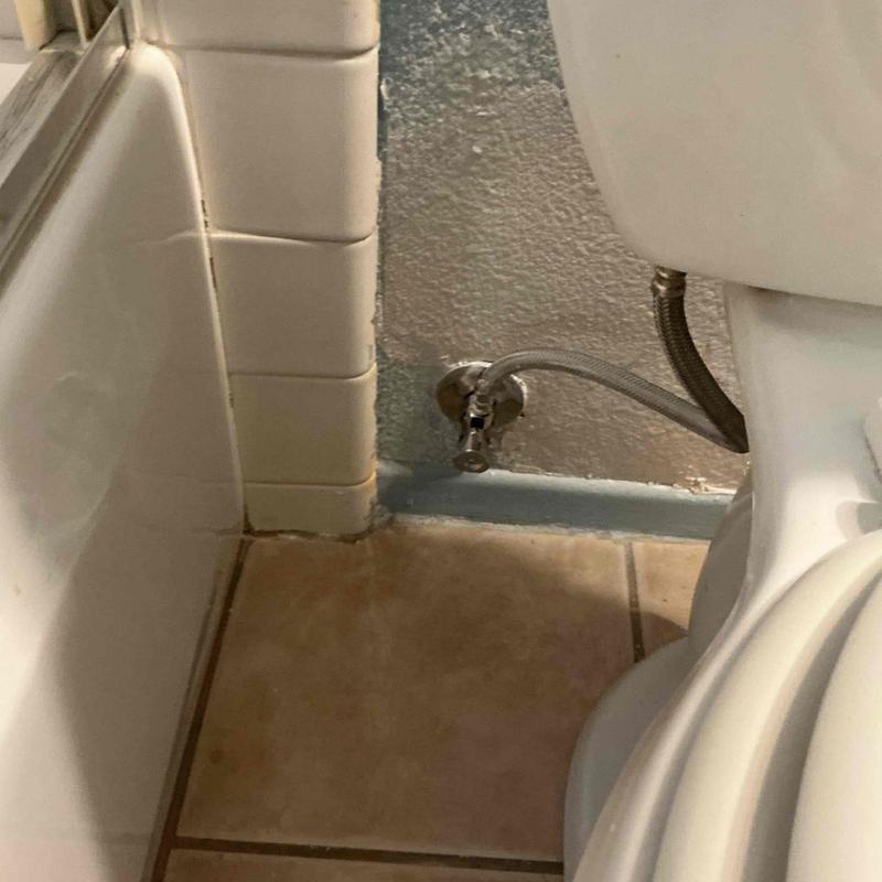 A plumber in Corona, California investigated a possible water leak behind a wall. The customer reported hearing running water and feeling heat near the wall shared with the water heater. The plumber inspected the area to identify the source of heat and sound, which may indicate a leak or malfunction.